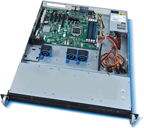 マザーボードIntel 純正 サーバーボードS1200BTL搭載。 メモリーDDR3 1333MHz ECCメモリを最大4個搭載可能。4GByteモジュールを用いれば、最大16GByteの搭載が可能。 |