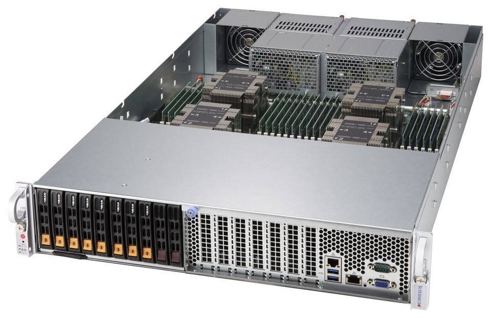 第2世代 Intel Xeon Scalableプロセッサを4個搭載したクアッドソケット2Uサーバです。184GHz(2.3GHz x 80コア)から302GHz(2.7GHz x 112コア)までのCPU性能をサポートし、一般のパソコンの能力を遥かに超える演算性能を提供します。