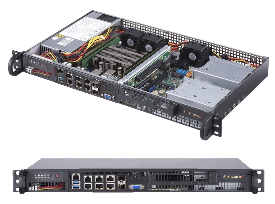 4 x 1GbE RJ45ポート、2 x 10GbE SFP+および2 x 10GbE RJ45ポートを搭載し、電力効率と空間効率に優れたコンパクト1Uラックマウント型サーバです。