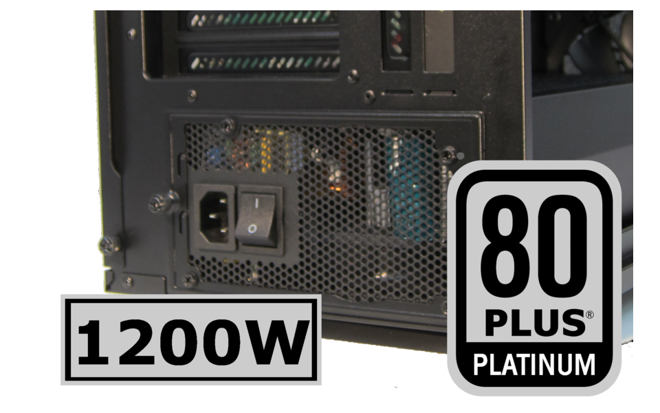 1200W の大容量電源を搭載。NvidiaやAMDの最新の高性能GPUカードを後付けしても電力容量に余裕があります。
